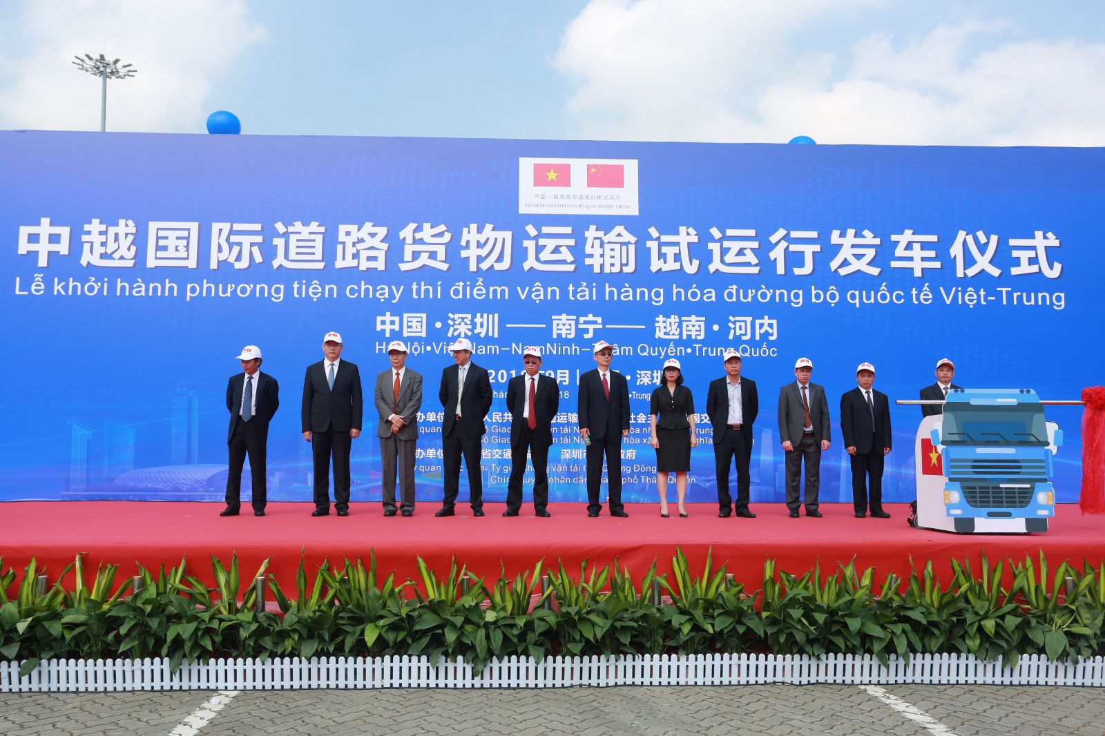 9月19日,中越国际道路货运试运行发车仪式在深圳华南国际物流中心举行。交通运输部总工程师周伟、越南交通运输部国家公路总局副总局长潘氏秋贤、广东省人民政府副秘书长钟旋辉,深圳市人民政府副秘书长徐松明出席启动仪式并讲话。