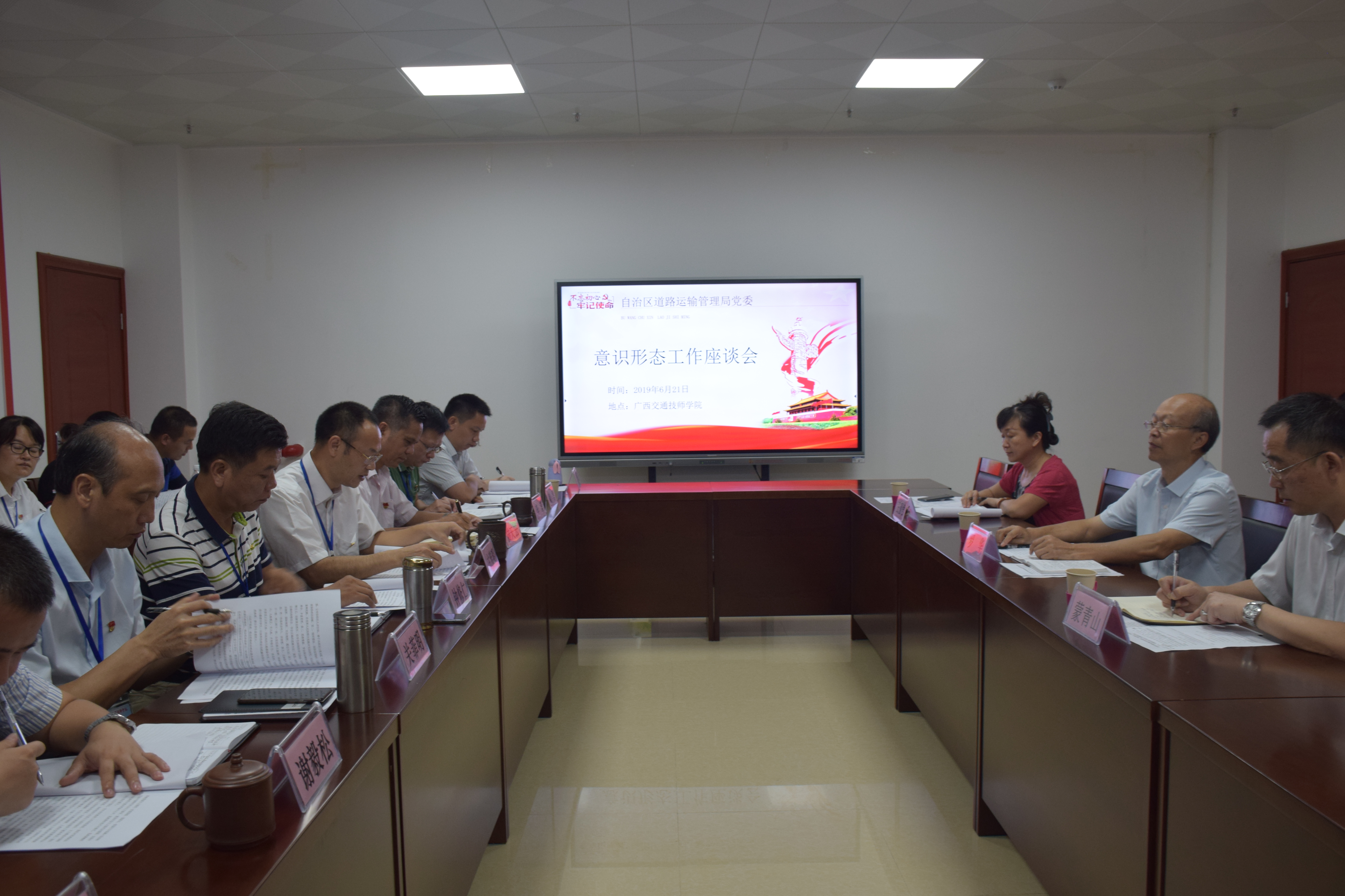 621自治区道路运输管理局党委在广西交通技师学院召开“不忘初心、牢记使命”主题教育意识形态工作座谈会。座谈会主题是加强思想政治教育,以优秀传统文化引导师生践行社会主义核心价值观,旨在通过切实解决广大师生意识形态、政治立场、政治信仰、价值观问题,充分发挥传统文化的育人作用。自治区道路运输管理局党委书记罗华、局党委办公室负责人、广西交通技师学院领导班子及教师和学生代表参加,会议由自治区道路运输管理局党委副书记蒙青山主持。