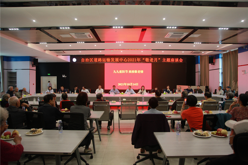 10月14日,自治区道路运输发展中心在中心办公楼8楼会议室召开主题为“九九重阳节 浓浓敬老情”2021年重阳节老干部座谈会。46名退休老同志及中心各科室负责人欢聚一堂,共述感想、互表祝福、建言献策、共话发展。中心党委书记黄星海,中心主任张小健,中心副主任朱华忠、宋健出席座谈会。座谈会由党委书记黄星海主持。