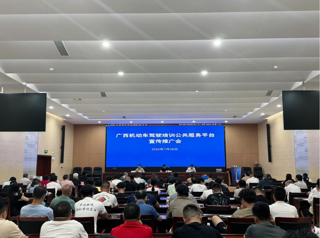 2025年7月28日下午,南宁市召开广西机动车驾驶培训公共服务平台(以下简称广西驾培平台)宣传推广会议,正式启动广西驾培平台在全市范围内的推广应用工作。此次会议深入贯彻落实《广西壮族自治区交通运输厅关于印发广西机动车驾驶培训公共服务平台应用工作方案的通知》(桂交规 [2025] 1 号)精神,对平台上线后的各项工作进行全面部署。自治区道路运输发展中心到会指导,市交通运输局相关科室、局属相关单位,各县(市、区)交通运输局,市驾培协会及全市驾培机构参加会议。会议指出,驾培行业直接关系群众出行安全与民生福祉,是交通运输服务体系的关键组成部分。推广应用广西驾培平台,是推动驾培行业数字化转型的核心举措,更是破解群众“学驾痛点”、提升道路运输安全水平的务实之举。