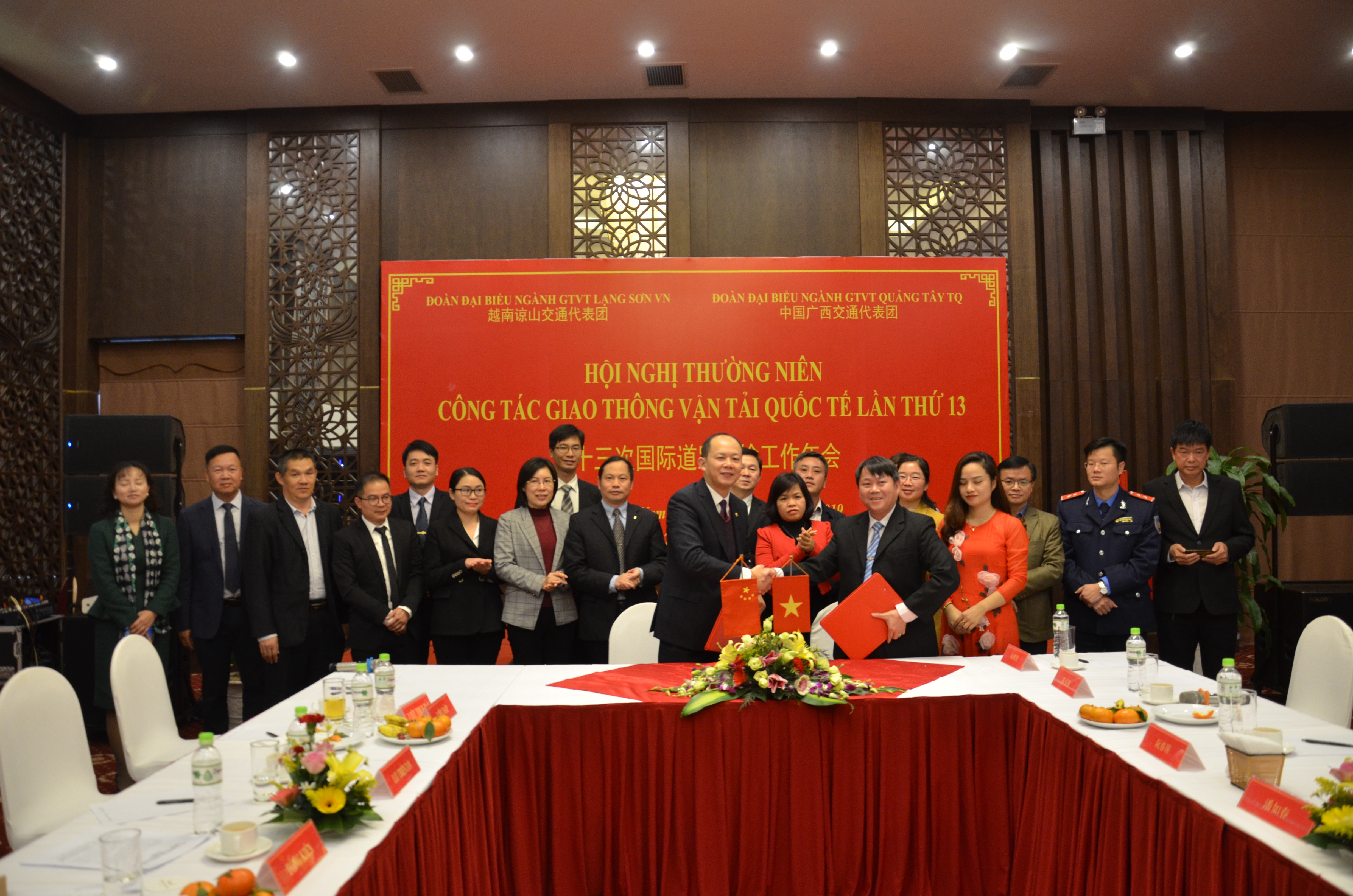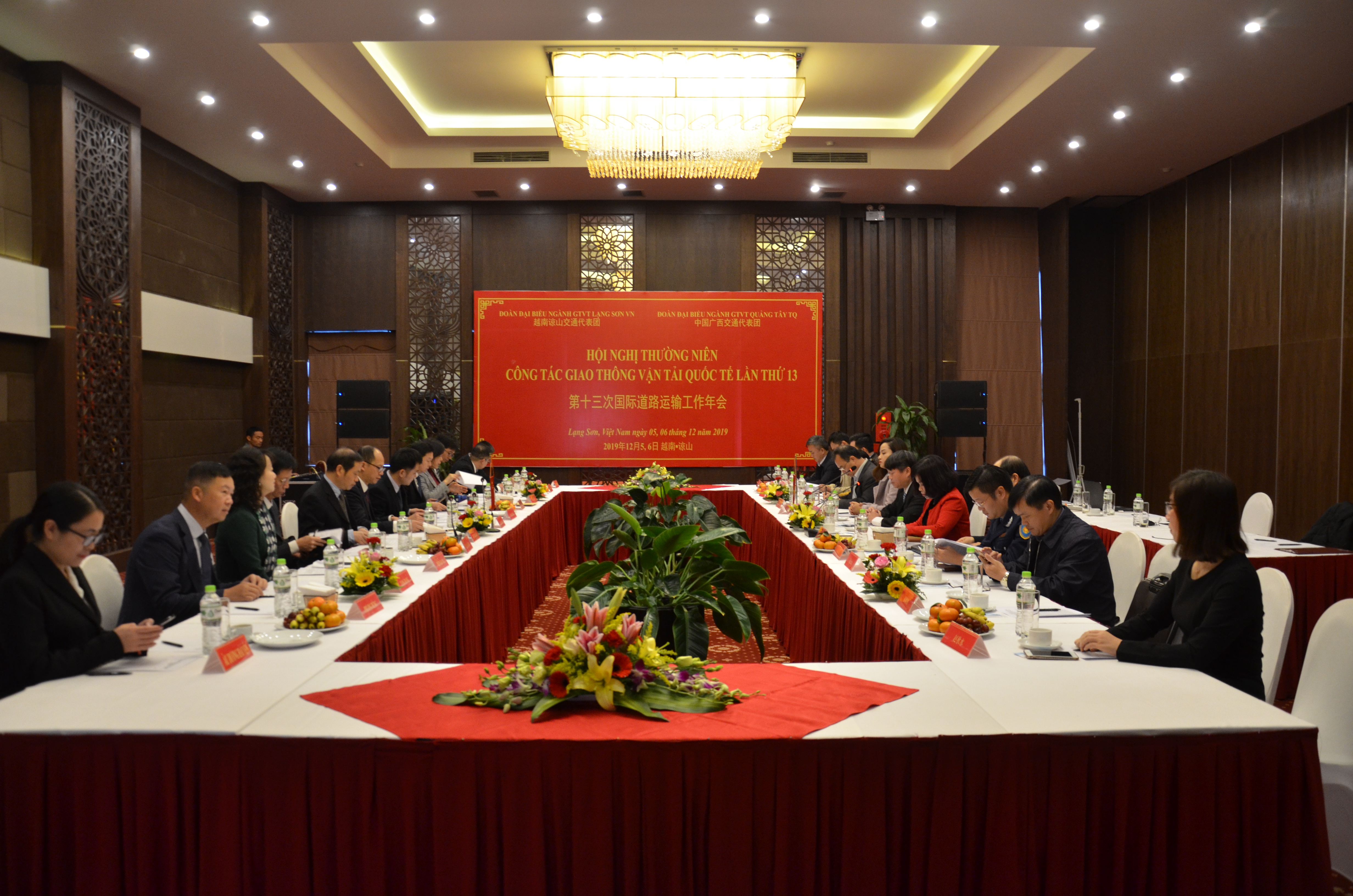 为进一步加强中国广西与越南谅山两省(区)在国际道路运输领域的合作,根据中越双方定期举行年度工作例会的精神,应越南谅山省交通运输厅的诚挚邀请,2019年12月5至6日,自治区交通运输厅陆晓明副厅长率广西交通运输代表团赴越南谅山省,与以谅山省交通运输厅阮玉辉副厅长为团长的谅山省交通运输代表团举行第十三次国际道路运输工作年会。双方就贯彻落实1994年签订的《中越两国政府汽车运输协定》、2011年签订的《中越两国政府关于修改中越汽车运输协定的议定书》和《中越两国政府关于实施中越汽车运输协定的议定书》(以下简称协定和两议定书)、第十次中越汽车运输事务级会议精神、2020年开展工作重点以及国际道路运输领域合作的内容等议题,坦诚沟通,深入交换意见,达成多项共识。