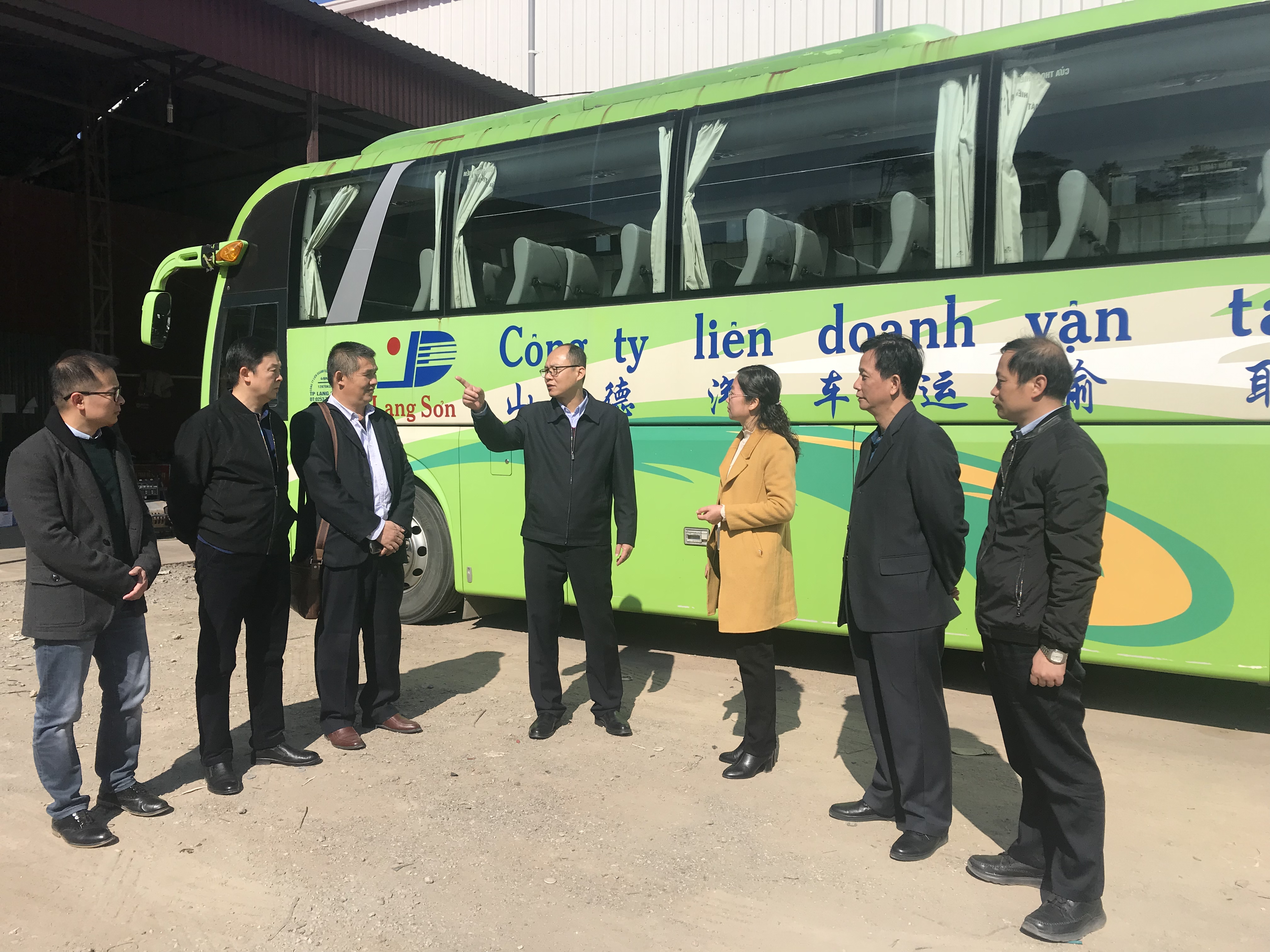 期间,广西交通运输代表团考察了同登火车站、广西运德汽车运输集团在越南谅山的合资企业—山德汽车运输联营公司、峙马口岸(越南)、爱店口岸。自治区交通运输厅综合运输管理处唐飞处长、自治区道路运输管理局张小健局长,自治区国际道路运输管理办公室有关人员,崇左、南宁市交通运输局,友谊关口岸国际道路运输管理处,相关国际道路客货运输企业、保险公司负责人作为中方代表团成员参加会谈。