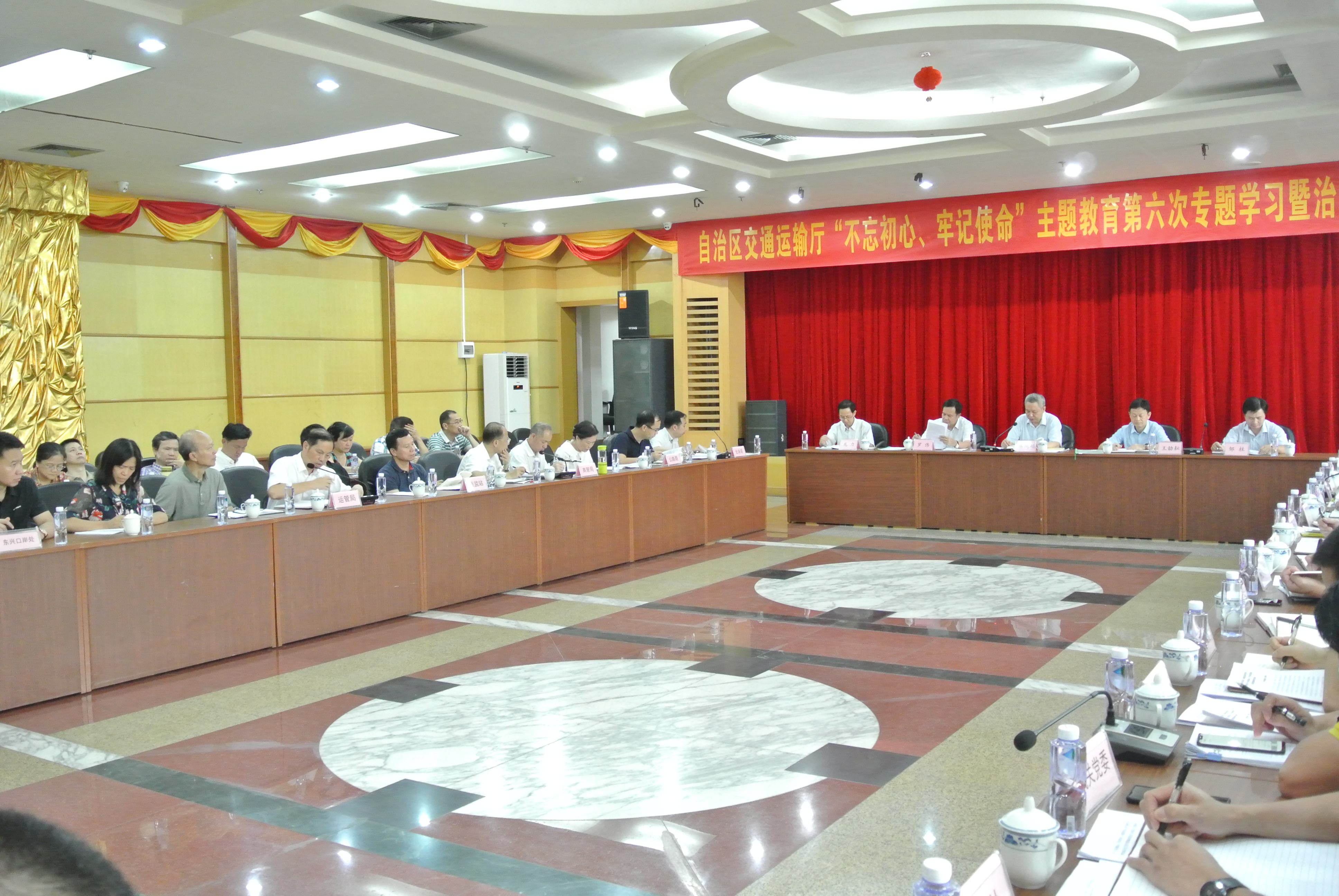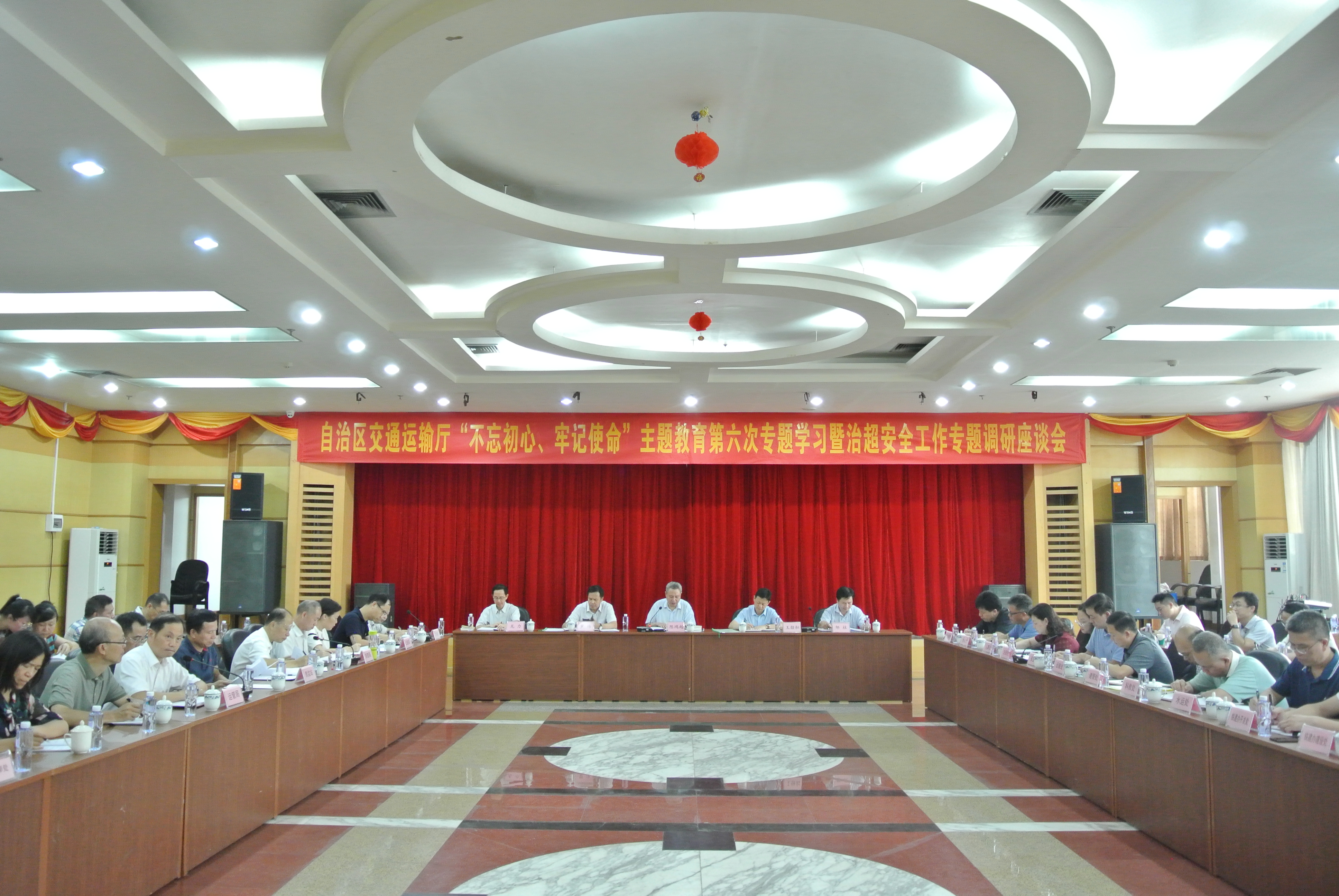 7月12日,自治区交通运输厅召开“不忘初心、牢记使命”主题教育第六次专题学习暨治超安全工作专题调研座谈会。自治区交通运输厅党组书记、厅长,自治区铁路建设办公室主任陈鸿起主持会议并讲话,自治区党委第二巡回指导组组员邹柱、涂仁标同志到会指导。厅党组成员、副厅长王劼耘,副巡视员罗伟、龙力参加会议。会上,陈鸿起领学了《习近平关于“不忘初心、牢记使命”重要论述选编》《习近平新时代中国特色社会主义思想学习纲要》部分篇目以及《习近平关于交通运输论述摘编》有关内容。随后,与会人员围绕当前综合治超安全和运输市场存在的不足、问题以及下一步措施进行了交流研讨。
