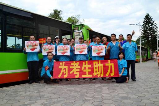 活动期间,为确保送考活动的行车安全,南宁市城市客运交通行业对所有参加“爱心送考”的车辆进行全面检查,确保车辆技术状况良好,并对全体驾驶员进行安全培训和教育,挑选出经验丰富、行业先锋模范驾驶员,组成“党员先锋队”、巾帼班组等特色送考车队参加“爱心送考”活动。送考过程中,还通过提醒考生是否都带齐考试证件,免费提供考试文具或神药物等体贴服务,为考生提供优质的出行服务。
