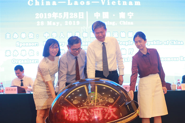 5月28日,大湄公河次区域(GMS)国际道路运输(中国—老挝—越南)启动仪式在南宁综合保税区举行。中国交通运输部运输服务司副司长王绣春,老挝公共工程和运输部副部长圆沙瓦•西盘顿,越南交通运输部公路总局副总局长潘氏秋贤,中国国家便利运输委员会副主席、广西壮族自治区副主席费志荣分别在仪式上致辞并共同宣布大湄公河次区域国际道路运输正式启动,标志着广西国际道路运输由中越双边合作迈向与GMS各国多边合作发展新阶段。