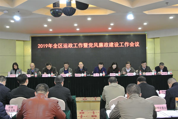 罗华书记作的全区运政系统党风廉政建设工作报告,全面回顾了2018年全区运政系统党风廉政建设取得的成绩,分析了当前全区运政系统党风廉政建设面临的形势,要求全行业进一步增强“四个意识”、坚定“四个自信”、坚决做到“两个维护”,以政治建设为统领,持续推进全面从严治党向纵深发展,着力开创全区运政系统党风廉政建设和反腐败工作新局面。一是把党的政治建设摆在首位,全面净化党内政治生活;二是认真贯彻落实新时代党的建设总要求,切实履行好全面从严治党的主体责任;三是坚持正风肃纪,持续推进纪律作风建设,持之以恒落实中央八项规定精神;四是注重抓早抓小,防微杜渐,构建全面覆盖、协同高效的监督体系;五是加强纪检队伍建设,确保忠诚干净担当。