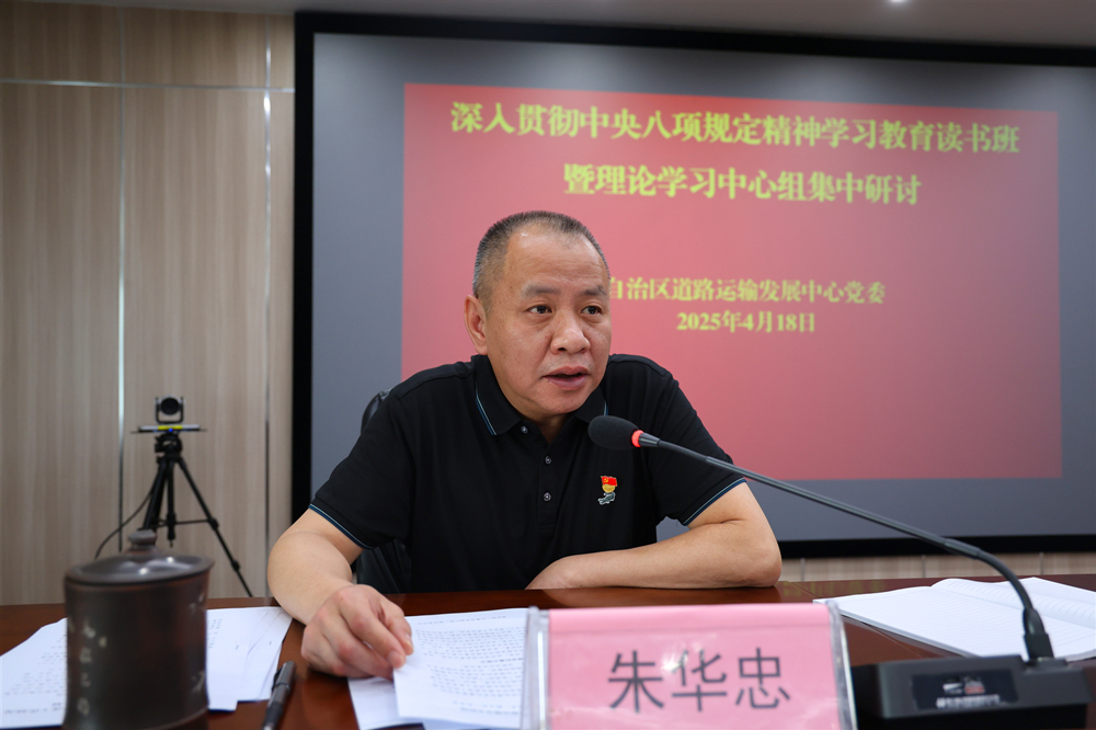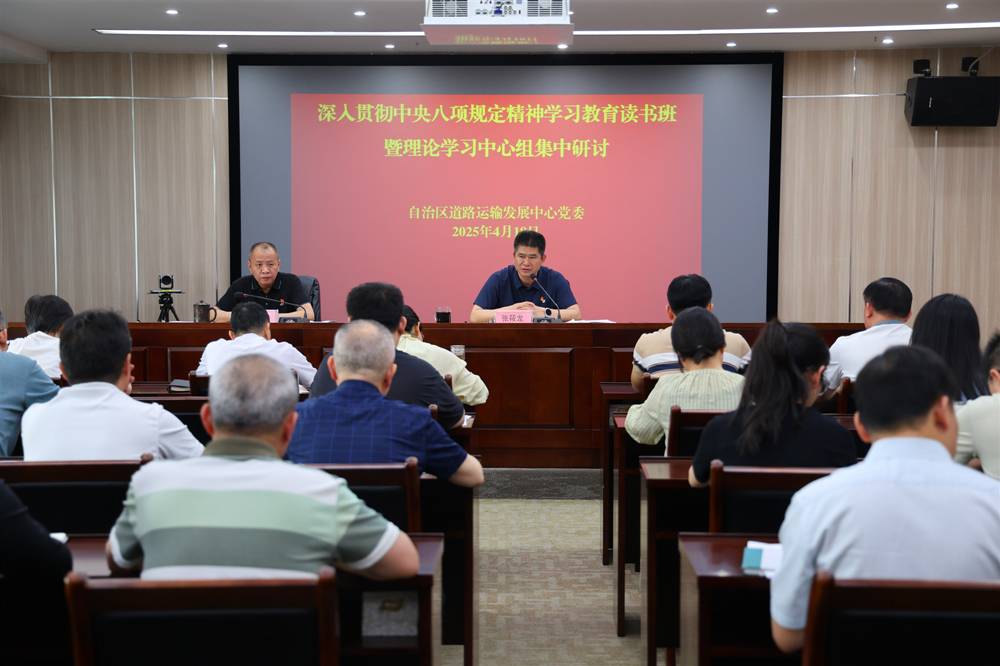 4月18日,自治区道路运输发展中心党委在3月28日举行深入贯彻中央八项规定精神学习教育读书班暨理论学习中心组集中学习的基础上,继续深入学习研讨。中心党委书记、主任张筱龙主持会议并讲话,中心在家领导班子成员和全体党员干部参加会议。