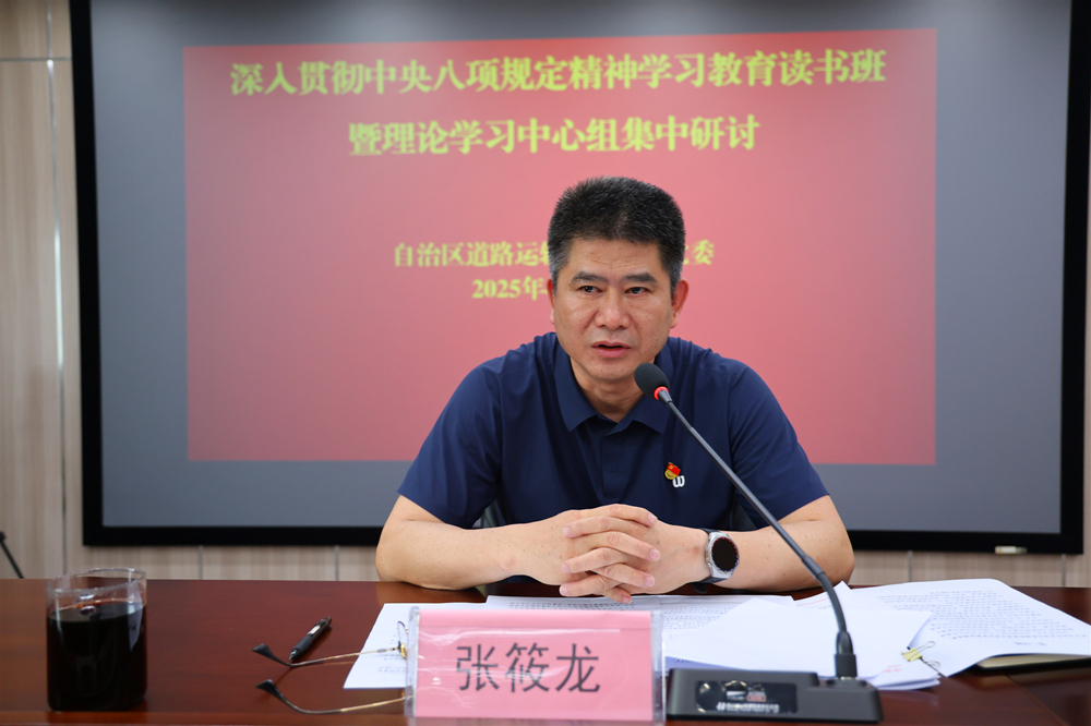 张筱龙结合当前工作实际和作风建设情况强调,要锲而不舍贯彻中央八项规定精神,持续深化作风建设,在加快建设交通强区、努力建设新时代壮美广西实践中提振精气神、锤炼好作风、展现新担当。一要坚持以上率下,带头落实中央八项规定精神,带头改进工作作风,带头担当作为,推动学习教育走深走实。二要坚持以学促干,把转作风和促发展结合起来,以作风建设成效推动完成中心职责职能整合优化、运输物流降本提质增效等各项年度目标任务。三要坚持正风肃纪,对标对表查,做到全面检视,扎实开展整治不担当不作为、货车司机投诉处置效率质量不高、群众身边不正之风和腐败等问题,确保全面贯彻落实中央八项规定及其实施细则精神。