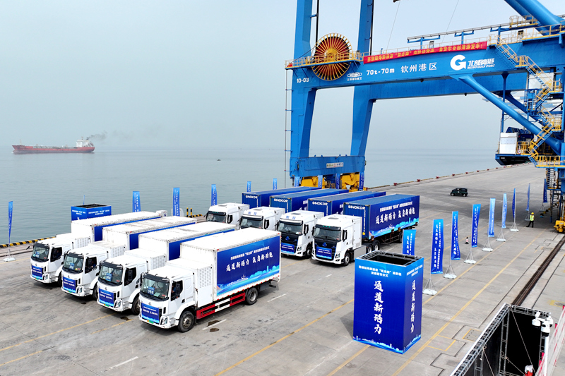 人民网钦州4月15日电 (记者陈燕)4月14日,西部陆海新通道“氢走廊”渝黔桂贯通首发仪式在广西钦州港和重庆无水港同时举行,标志着我国首条跨区域氢能重卡干线正式贯通,并进入常态化运营阶段。